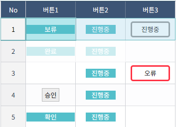 {"btn1":"", "btn2":"승인", "btn3":"<div class='myBtn2'>오류</div>"}, //btn1 컬럼의 데이터가 빈값