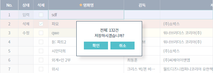 - (Method)doSave, getSaveJson, getSaveString 등의 저장 함수를 호출할 때, 사용자가 저장함수에서 설정한 인자(saveMode, col, validRequired)에 따라 유효성 검사를 진행하는 (Cfg)ValidCheck 추가