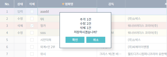 [수정 후 - 기본 메세지로 추가, 수정, 삭제 건수가 출력됨]