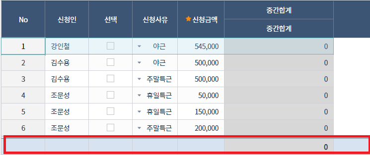 [수정 후 - 설정한 FormulaRow:Sum 이 자동으로 표시됨]