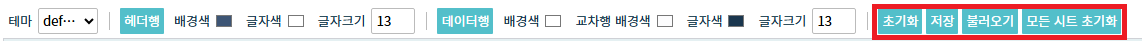 StyleRowConfig에 버튼을 설정할 수 있는 Layout 옵션 추가 시트 상단 혹은 하단에 별도의 행을 통해 시트의 스타일을 설정 할 수 있는 StyleRowConfig 속성에 스타일 행의 버튼 순서와 종류를 설정할 수 있는 Layout 옵션이 추가되었습니다.