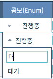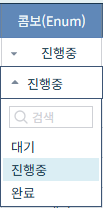 options.Cols:[ {"Header": "콤보(Enum)", "Type": "Enum", "Name": "ComboData", "Enum": "|대기|진행중|완료", "EnumKeys": "|01|02|03", EnumFilter:1}, ]; |